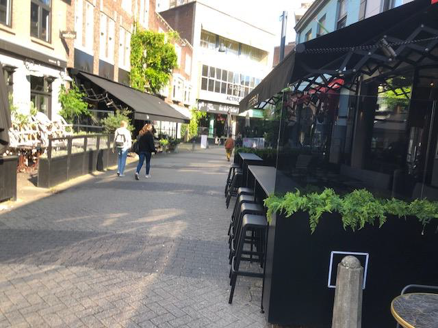 - Zorg dat het terrassenbeleid van april 2023, in de huidige situatie wordt gehandhaafd. Dat is nu allerminst het geval en leidt tot misbruik van de openbare ruimte en afname van verantwoordelijkheid en naleving. Dus: geen verlening van eilandterrassen, geen barkrukken op de rijloper, geen bloembakken in de goot, geen open vuur op terrassen, geen zijschermen die langer zijn dan 2/3 van de ruimte tot de rijloper, om een paar aspecten te noemen.
