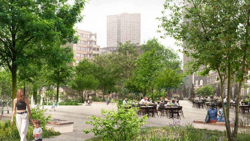 In het plan van de ontwerpers van Flux Landscape Architecture uit Utrecht is voorzien in wateropvang, terassen, weekmarkten, evenementen, carnavalstenten (misschien iets minder groot, maar waar leg je de