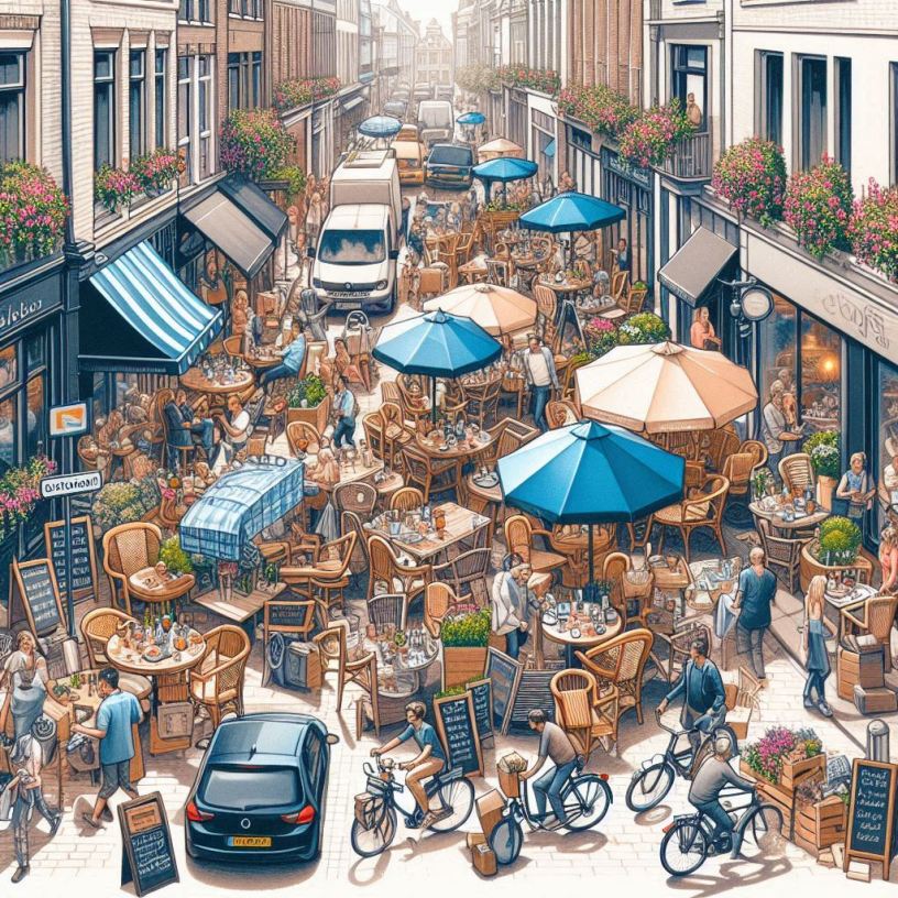 Met militaire precisie hebben de horecaondernemers hun stoelen, tafels, bloembakken en parasols strategisch verspreid over de openbare ruimte, waarbij het gerucht gaat dat sommige tafels zelfs dubbele espresso’s serveren aan passerende bakfietsen.